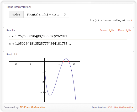 new OneVariableFunction(x => 9 * Math.Log(x) * Math.Sin(x) - x * x * x);